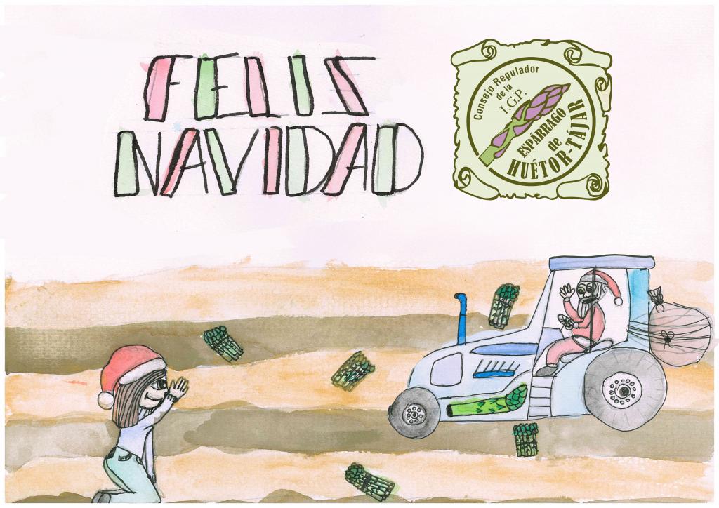 Carmen Gómez Soriano, una escolar de 4º de Primaria del CEIP San Isidro Labrador del municipio de Huétor Tájar, ha ganado el concurso de postales navideñas que ha organizado la IGP Espárrago de Huétor Tájar para alumnos y alumnas de 1º, 2º, 3º o 4º de Primaria de la provincia de Granada.