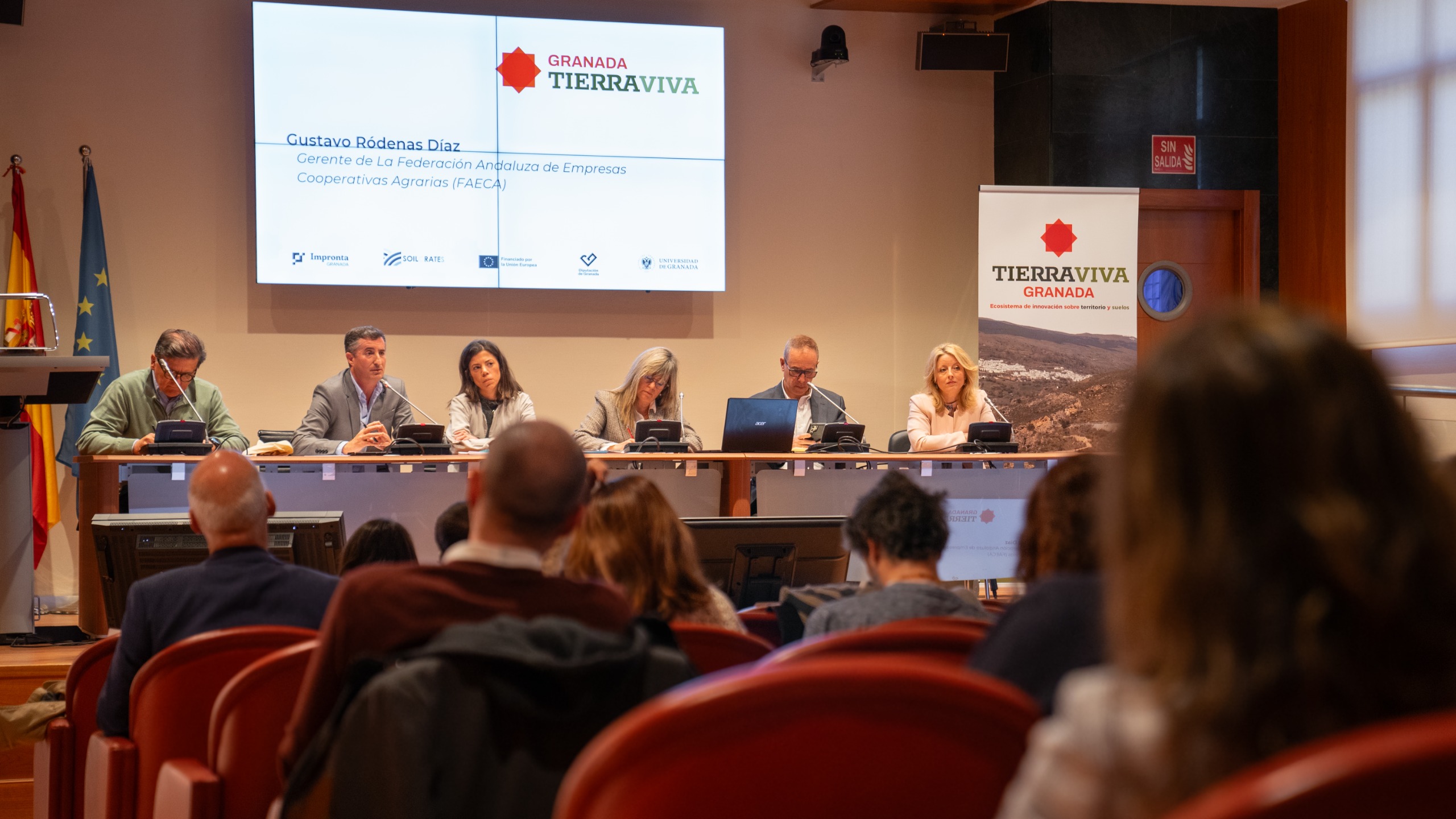 El director de FAECA-Cooperativas Agroalimentarias de Granada, Gustavo Ródenas, ha participado en una mesa redonda en el marco de la presentación del proyecto Granada Tierra Viva, una iniciativa de referencia para la regeneración del suelo y el desarrollo sostenible en la provincia liderada por la Universidad de Granada y por la Diputación de Granada.