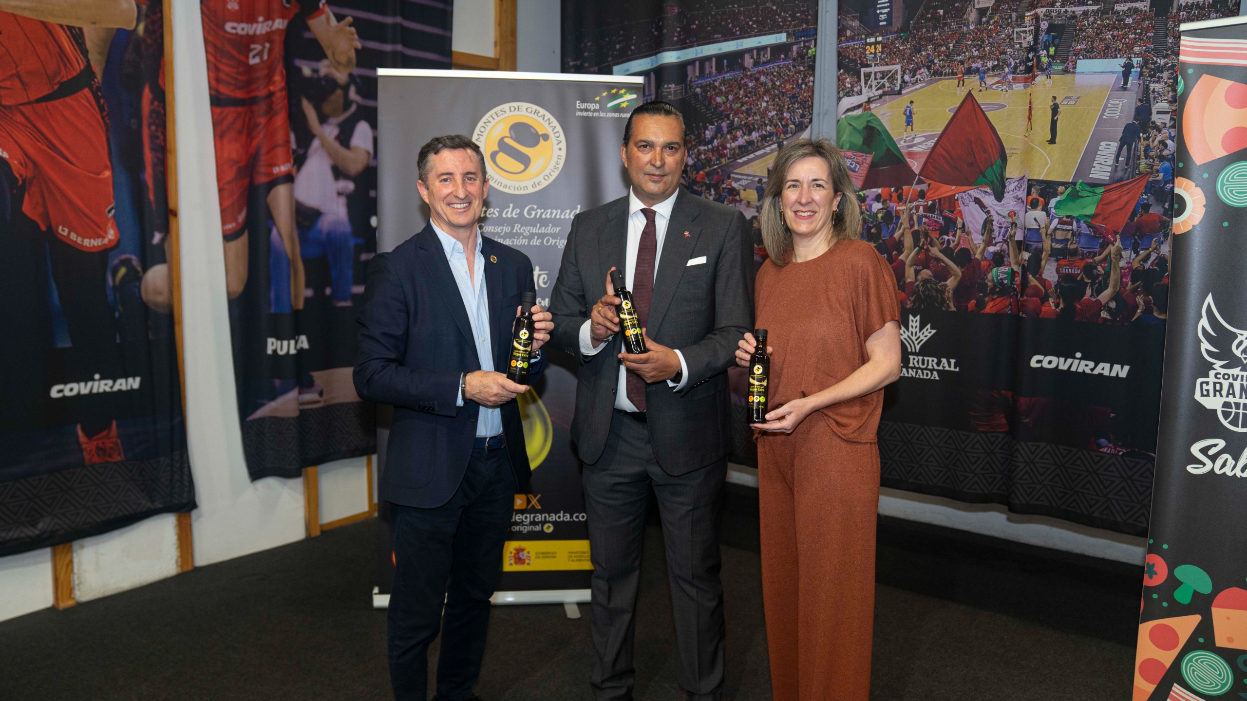 El pasado 17 de mayo, durante el descanso del partido entre el CB Granada y el Breogán, celebrado en el Palacio de Deportes de Granada, los asistentes pudieron disfrutar de una degustación de Aceite de Oliva Virgen Extra con Denominación de Origen Protegida Montes de Granada.